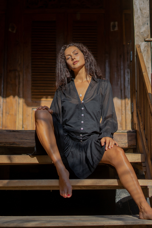 Black Cotton Boho Dress With Bottom Frill | Mia