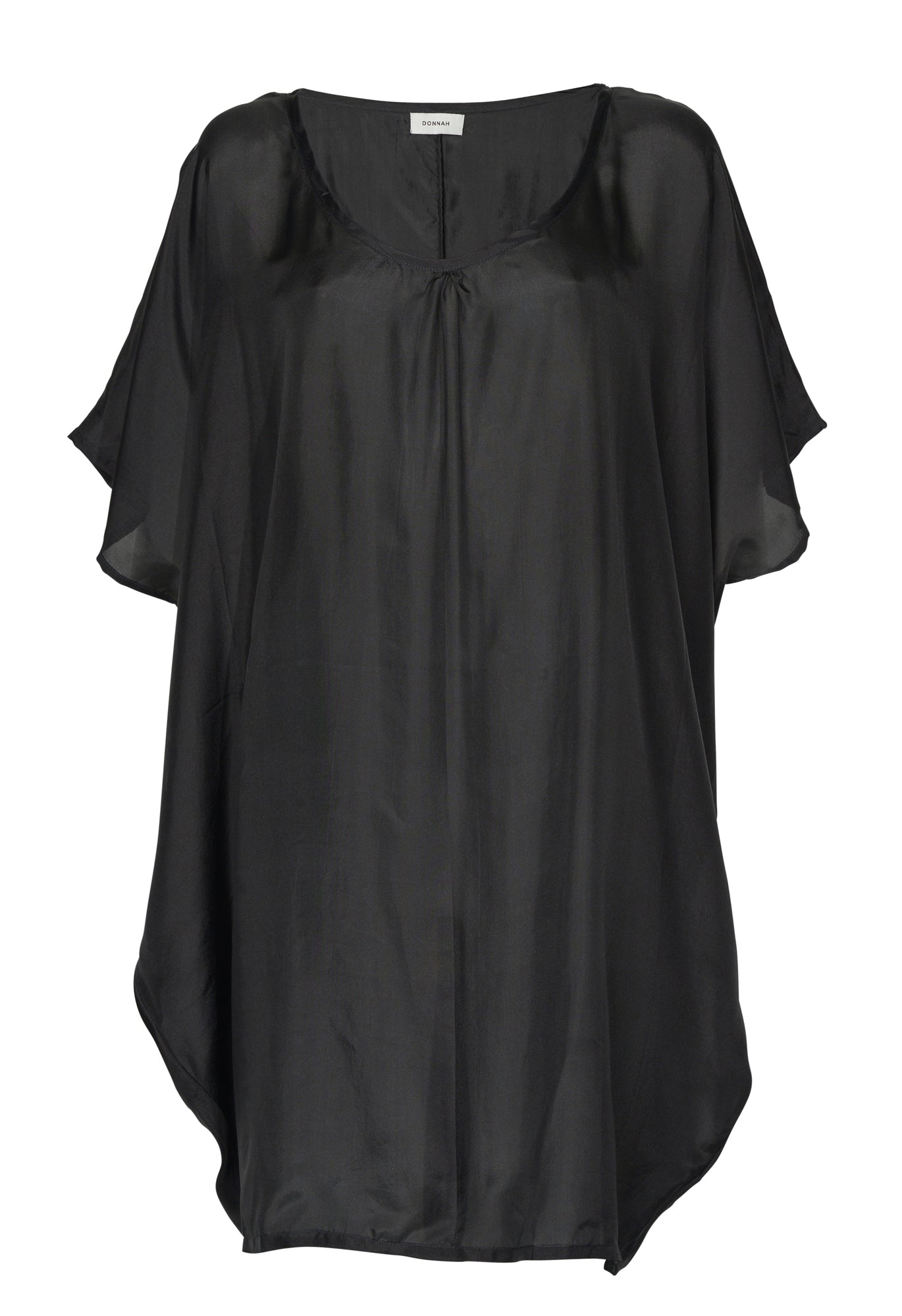 This elegant relaxed fitting caftan style silky dress in black viscose will become your forever "little black dress". Perfect for cocktails, weddings or any special gathering, it's stylish yet so simple and elegant.